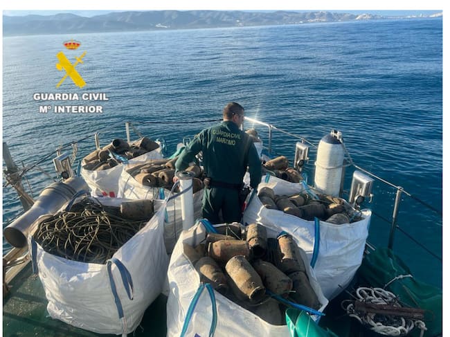 Los guardias civiles junto con un inspector de la Consellería de Pesca de la Generalitat Valenciana liberaron la línea y recuperaron del fondo marino un total de 760 cadufos.
