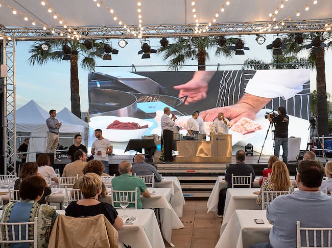 Seis espectáculos culinarios con los showcookings. Seis cocineros y chefs han pasado por el escenario de la Feria Gastronómica “Tasta Gandia”, con un lleno completo en esas mesas preparadas para los comensales que, previamente, habían reservado plaza.