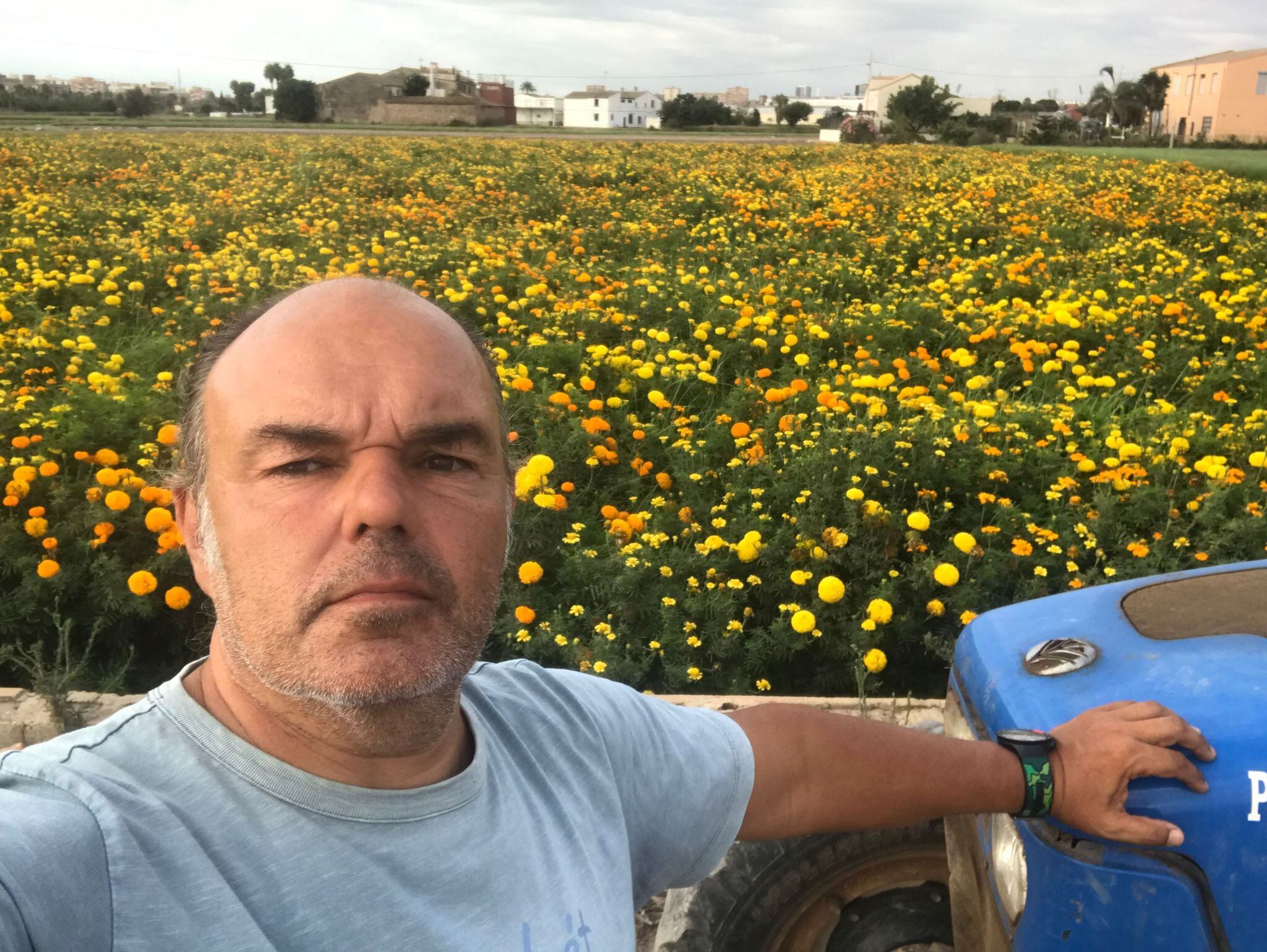 José Enrique Alonso Navarro es uno de los dos productores de la mitad de esas flores: una hectárea de clavellones, flores amarillas y naranjas. Un cultivo que alterna cada año en los mismos campos de su propiedad donde también crecen patatas y chufas. Este año se recolectó la patata el 20 de mayo y al día siguiente ya estaba plantada la flor, según explica a la Cadena SER