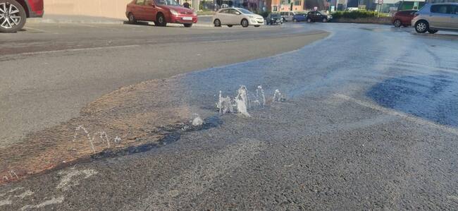 El agua emergiendo en medio de la carretera de subida al polideportivo / Ajuntament d'Alcoi