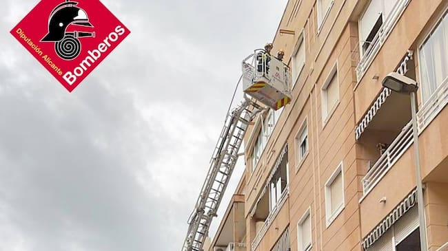 Los bomberos del Consorcio Provincial intervienen en el saneamiento de una fachada en Guardamar del Segura. Foto: CPBA
