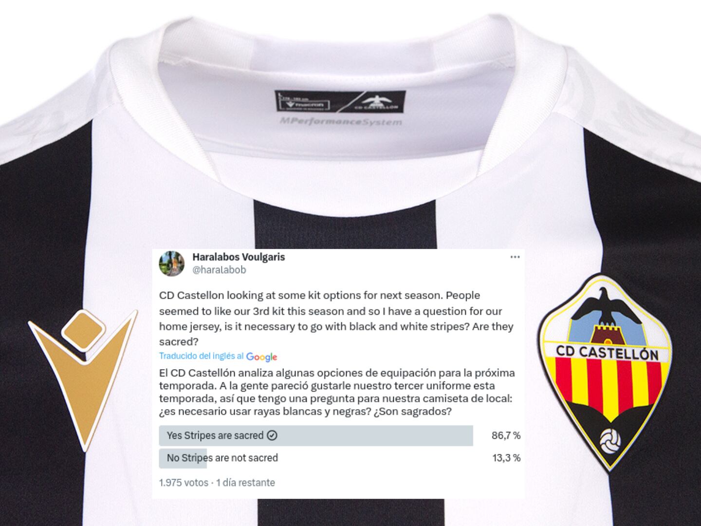 El C. D. Castellón empieza a trabajar en el diseño de la camiseta de la próxima temporada. El presidente del club, Bob Voulgaris, --a través de su cuenta oficial de Twitter-- ha lanzado una pregunta que ha causado revuelo entre la afición albinegra: "¿Es preciso usar rayas blancas y negras?¿Son sagradas?", cuestionaba Voulgaris.