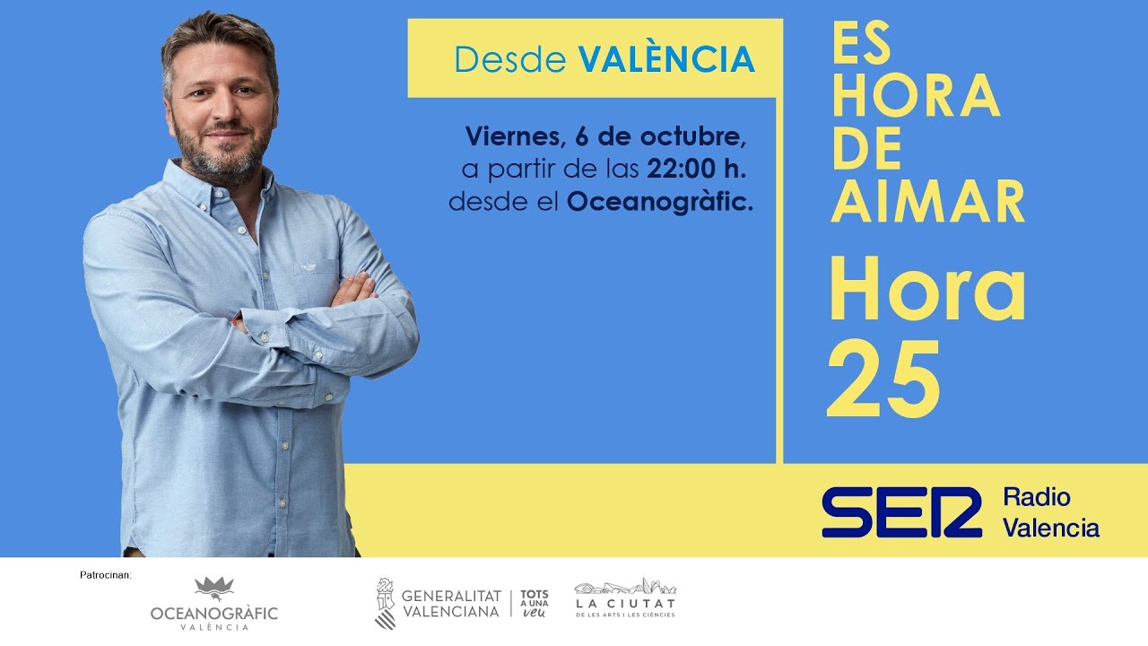 El próximo viernes 6 de octubre, Aimar Bretos y su equipo emitirán el programa en directo de 'Hora 25' desde València. En concreto, en la sala Mar Rojo de L'Oceanogràfic de València.
