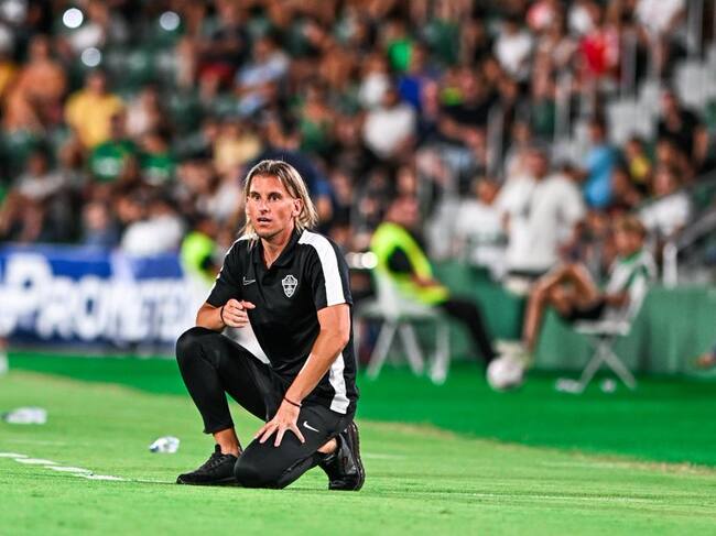 Sebastián Beccacece durante un partido del Elche en el Martínez Valero / SONIA ARCOS