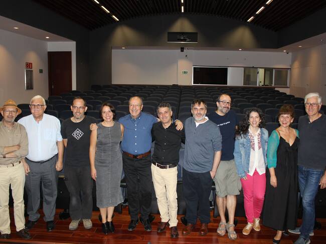 Els components de la Dependent junt al tècnic i director de Ràdio Alcoi, Gonzalo Belenguer i Juan Jordà, al finalitzar la representació al IVAM CADA Alcoi