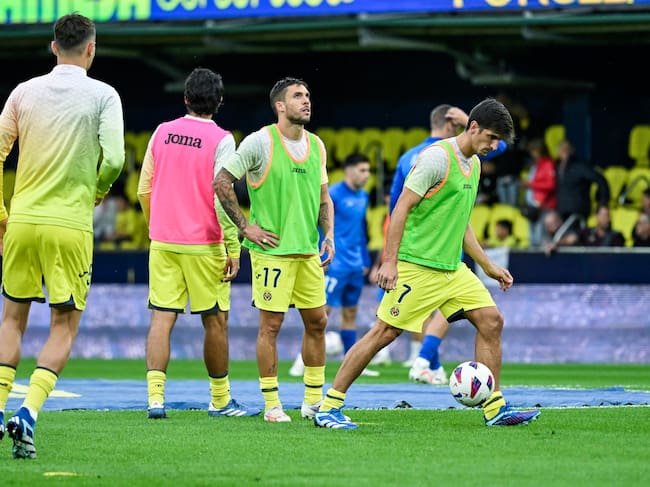 VILLARREAL, 22/10/2023.- Los jugadores del Villarreal realizan el calentamiento previo al partido de la jornada 10 de Liga de Primera División disputado entre el Villarreal y el Alavés en el estadio de La Cerámica, en Villarreal.- EFE/Andreu Esteban / ANDREU ESTEBAN (EFE)