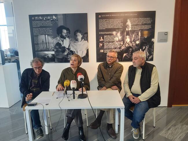 Presentació d'aquesta activitat cultural en el IVAM CADA Alcoi amb la regidora de Cultura, Elisa 'Cuqui' Guillem, Quico Carbonell, Toni Reig i Ximo Llorens / Radio Alcoy