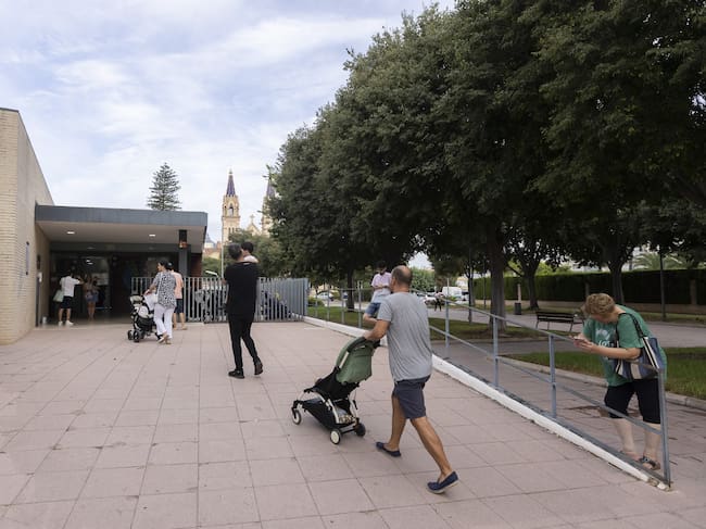 Padres y madres dejando a sus hijos en una escoleta municipal. / Alex Oltra