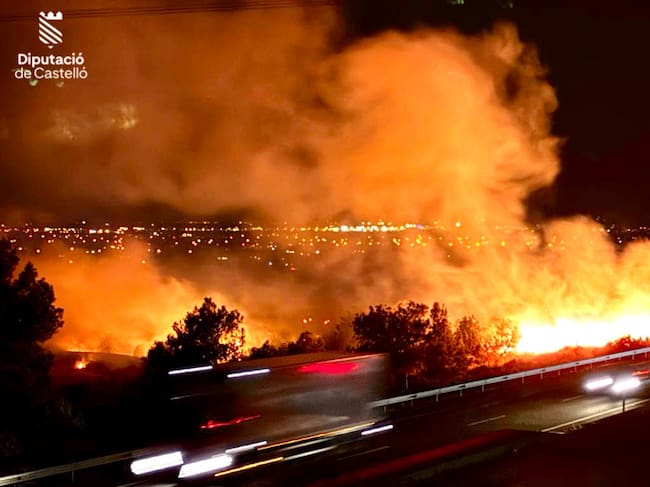 El fuego, repartido en tres focos distintos entre los términos municipales de Castelló y Benicàssim, estaban separados por una distancia de unos 500 metros cada uno. Las llamas se situaban entre la zona del Mater Dei y Montornés. El corte del carril no ha causado problemas en la circulación del tráfico, según informa la DGT.