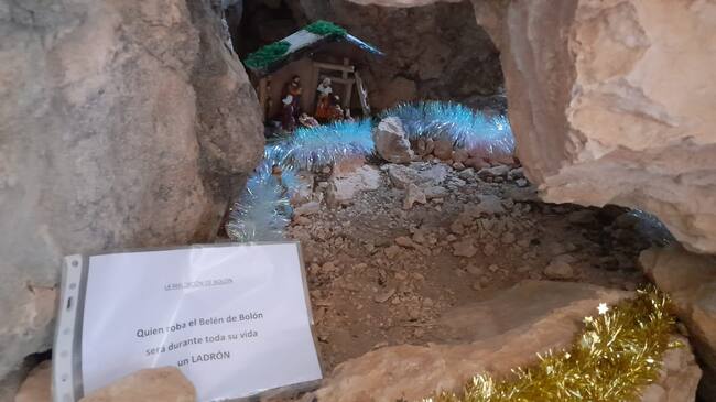 Los miembros del colectivo han montado un nuevo belén y han colocado un cartel con “la maldición de bolón” para ahuyentar a los ladrones más supersticiosos.