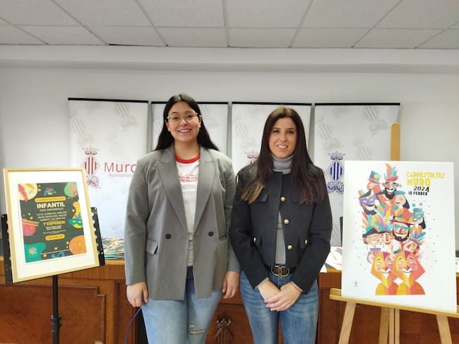 Elia Calbo, edil de Cultura, y Sara Beneyto, edil de Fiestas, en la presentación del Carnaval de Muro. / Radio Alcoy