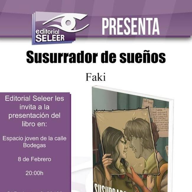 Este jueves 8 de febrero a las 20 horas, el Espacio Joven de Villena será el escenario de la presentación del libro "Susurrador de Sueños" de la joven escritora Faki (África Then) bajo el sello editorial Seleer. La periodista Pilar Briones se unirá a la edil de Juventud del Ayuntamiento de Villena Eva García, para conducir este evento literario.