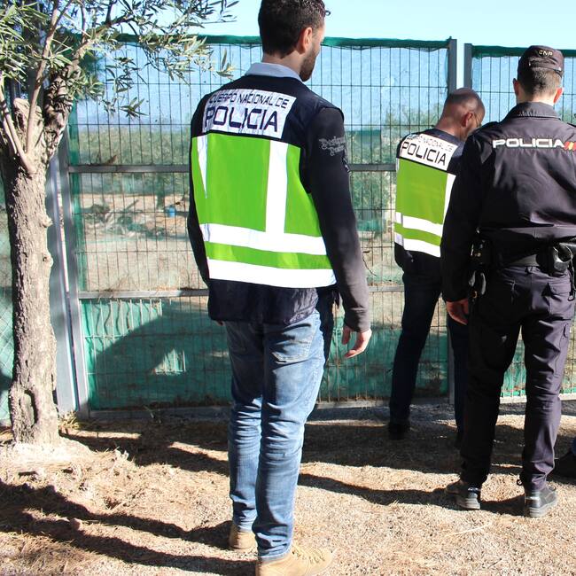 Agentes de la Policía Nacional inspeccionan una de las empresas agrarias investigadas por explotar laboralmente a sus trabajadores. / Policía Nacional