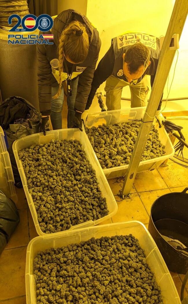 En el registro practicado se pudo intervenir un "botín" de drogas que según los estándares establecidos por la Oficina Central Nacional de Estupefacientes podría haber alcanzado un valor en el mercado ilegal de casi 46 mil euros. En él, más de 21 kilogramos de cogollos ya recolectados y listos para su distribución, 189 plantas en crecimiento, 45 kilogramos más de hoja de marihuana, así como todo el aparataje necesario para el montaje y mantenimiento de este tipo de cultivos “indoor” de marihuana como básculas, depósitos de agua, lámparas de vapor de sodio, ventiladores, split de aire acondicionado, transformadores, extractor de aire, peladoras de cogollos, etc.