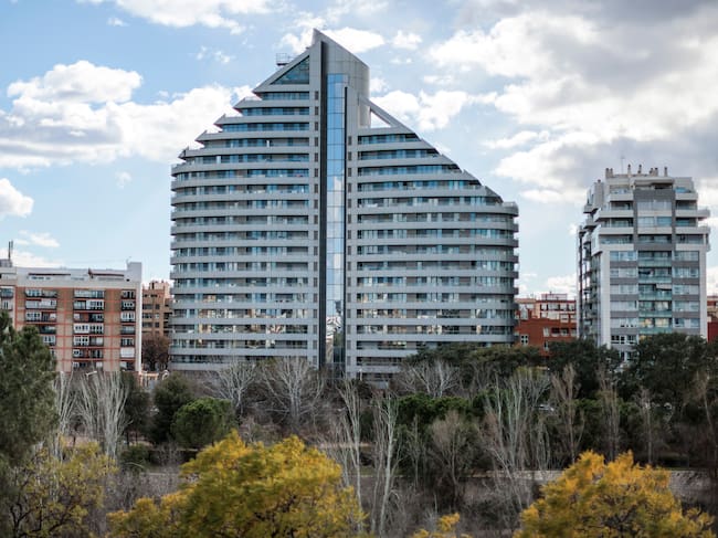 El edificio Navis de Mislata (Valencia), en la imagen, dispondrá de un informe que determinará el sistema constructivo de la fachada y si los materiales utilizados en su construcción son iguales o similares a los del edificio incendiado del barrio valenciano de Campanar que ha dejado 10 muertos y 15 heridos. / Biel Aliño (EFE)