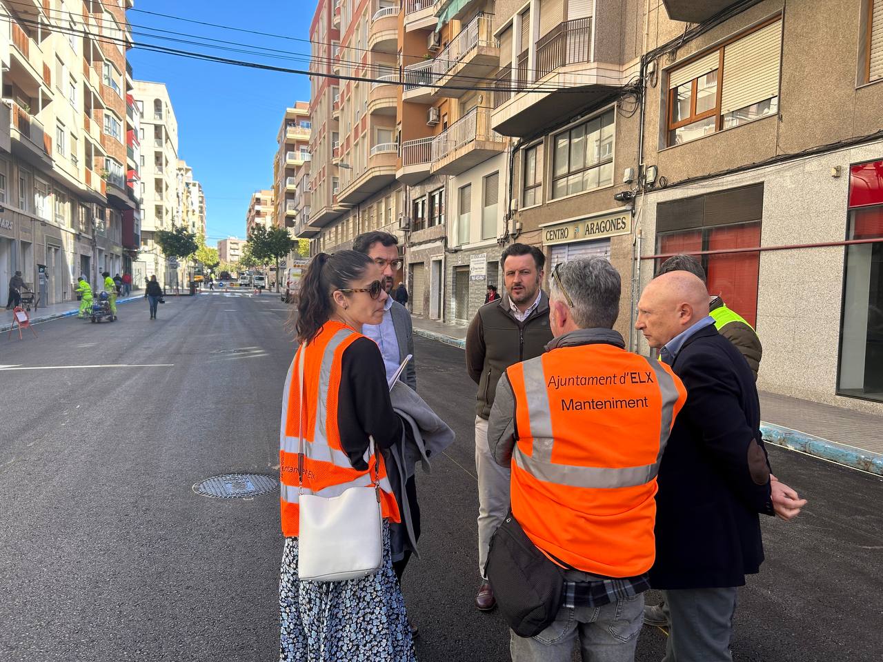 El alcalde de Elche, Pablo Ruz ha acudido a la calle Marqués de Asprillas en la que continúa el plan de asfaltado del municipio. Una calle en la que habrá una reseñalización, pintura, se instalará más luminaria y se plantarán 60 árboles entre los vehículos, sin quitar aparcamiento. Las obras comenzaron en esta calle el 4 y finalizarán el 7 de marzo con una previsión de que queden todas las obras de asfaltado previstas para antes de este verano.