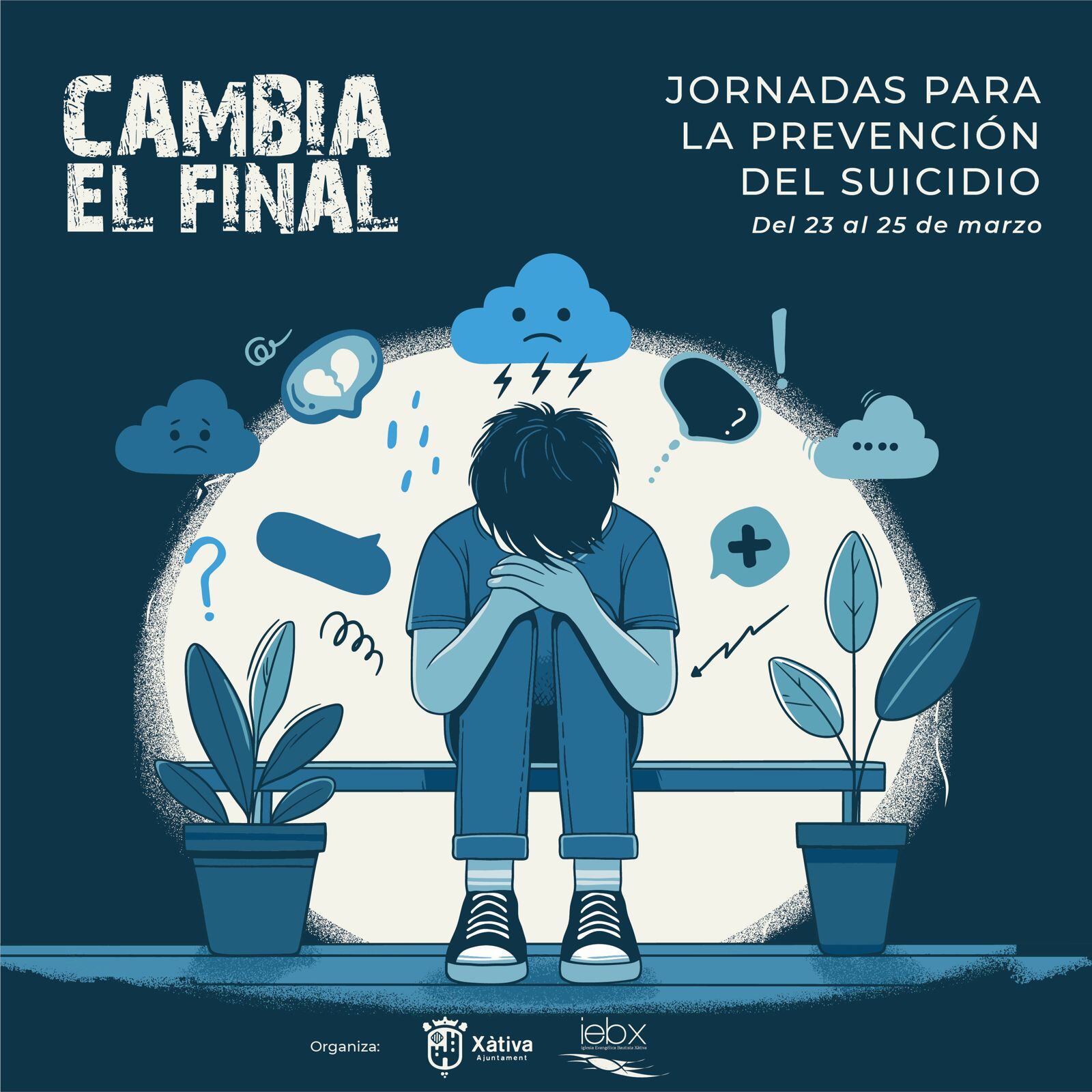 El Ayuntamiento de Xàtiva, de la mano de la Iglesia Bautista de Xàtiva, organiza este próximo fin de semana las jornadas «Cambia el final» que pretenden concienciar sobre la importancia en la prevención del suicidio, principalmente entre los más jóvenes. Las actividades tendrán lugar entre el sábado 23 de marzo y el lunes 25, e incluyen un concierto, dos charladas-coloquio y una presentación de libro.