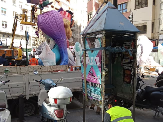 Operarios de Telefónica retiran una de las 180 cabinas de teléfono abandonadas en València / Ayuntamiento de Valencia
