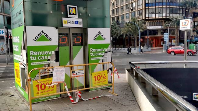 Acceso exterior al ascensor de la parada de Mercado de TRAM d'Alacant fuera de servicio hasta el 20 de mayo / Silvia Cárceles Pozo
