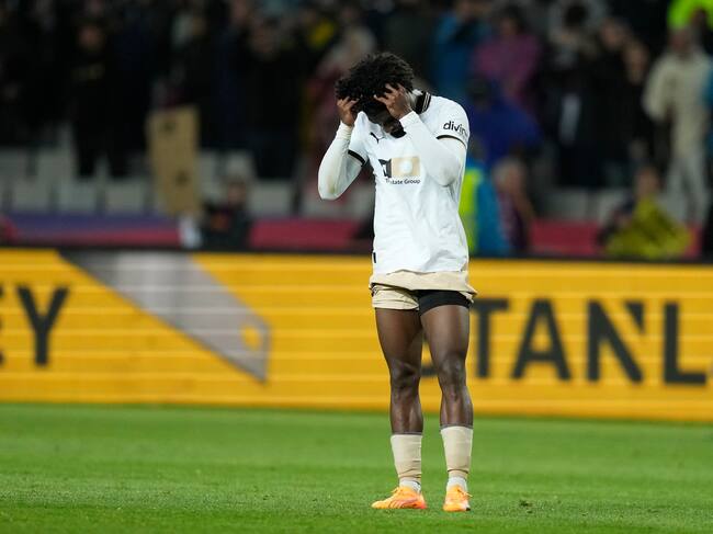 BARCELONA, 29/04/2024.- El defensa portugués del Valencia, Thierry Correia, a la finalización del partido de la jornada 33 de Liga en Primera División que FC Barcelona y Valencia CF disputan este lunes en el Estadio Olímpico Lluis Companys. EFE/Enric Fontcuberta. / Enric Fontcuberta (EFE)