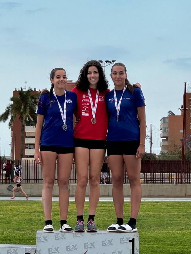 En la categoría femenina, Julia Nortes se hacia con la primera posición en el 400 metros lisos, Angels Palomares era segunda en el 3000 metros lisos, Adriana Bañón primera en el 100 metros vallas, Susana Sala primera en el 400 metros vallas, Nerea Marcos tercera en Salto de Longitud y Jimena Cutillas primera en 6000 metros marcha.