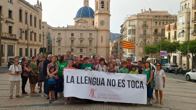 Se tracta d'una campanya que porta per lema ‘La llengua no es toca’ i es van fer protestes en la Plaça de Espanya d'Alcoi o a la biblioteca de Cocentaina, entre altres poblacions d'aquestes comarques.