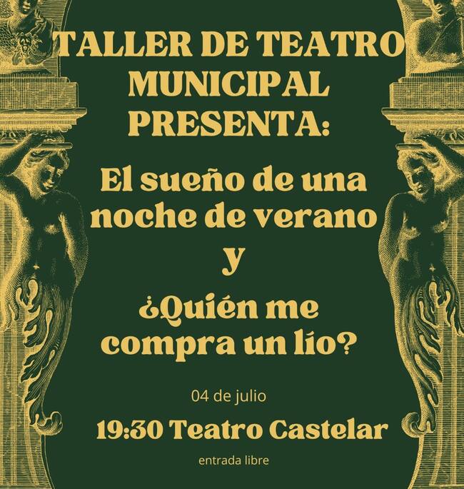El Teatro Castelar acogerá la representación de dos obras de teatro. A las 19:30 horas la comedia de William Shakespeare, “El sueño de una noche de verano”, que los alumnos y alumnas más jóvenes han preparado durante el curso. Además, también se representará la obra “¿Quién me compra un lío?”, adaptación de la desternillante comedia de enredo escrita por José de Lucio y Julián Moyron. En este caso será el alumnado de más edad el que representará esta obra que han preparado durante meses bajo la dirección de Olga Sanchiz. En total 40 alumnos sobre el escenario.