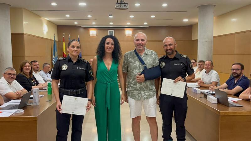 El Ayuntamiento de Tavernes de la Valldigna ha felicitado públicamente a dos agentes de la Policía Local, Vicente M.O. y Raquel B.B., que salvaron la vida de un vecino tras reanimarlo al sufrir un accidente hace poco más de un mes.