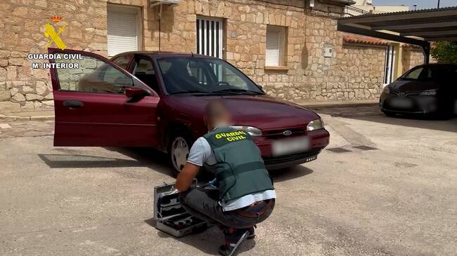 Un componente de la Guardia Civil inspecciona el vehículo de los detenidos / Guardia Civil