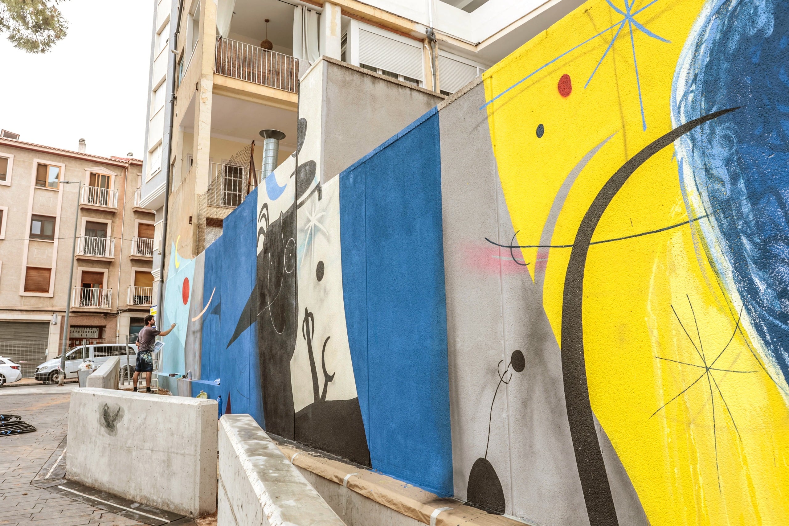 Alejandro Martínez llena de color la plaza Joan Miró de Elda con un mural en homenaje al célebre artista surrealista