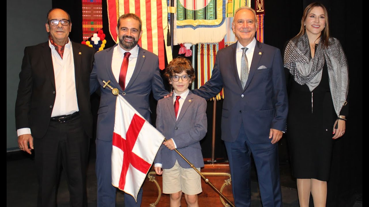 El presidente de la Asociación de San Jorge (ASJ), Francisco García Carrillo, que se estrenaba en el cargo en este acto, les impuso a todos las insignias que los acreditaba como los máximos representantes de las próximas fiestas de Moros y Cristianos de Alcoy.