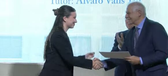 Josep Borrell fue el encargado de dar el galardón a Elena Monje, alumna y embajadora junior EPAS del instituto, junto a su tutor Álvaro Valls