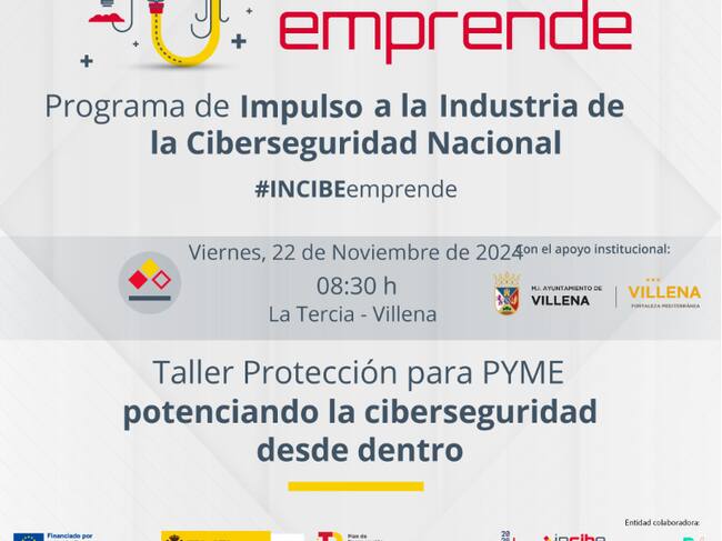 Aula Innova Formación y el Instituto Nacional de Ciberseguridad (INCIBE) han organizado en Villena el taller para mejorar la protección de las empresas en el ámbito informático, uno de los principales riesgos de las pequeñas y medianas empresas. La iniciativa es el ‘Taller de Protección para Pymes. Potenciando la ciberseguridad desde dentro’, una formación de carácter gratuito que está prevista el próximo 22 de noviembre en las instalaciones de La Tercia. La participación está abierta a todo el público general, aunque es de especial interés para aquellas personas que tengan alguna responsabilidad en el ámbito empresarial ante el incremento de las amenazas en ciberseguridad.