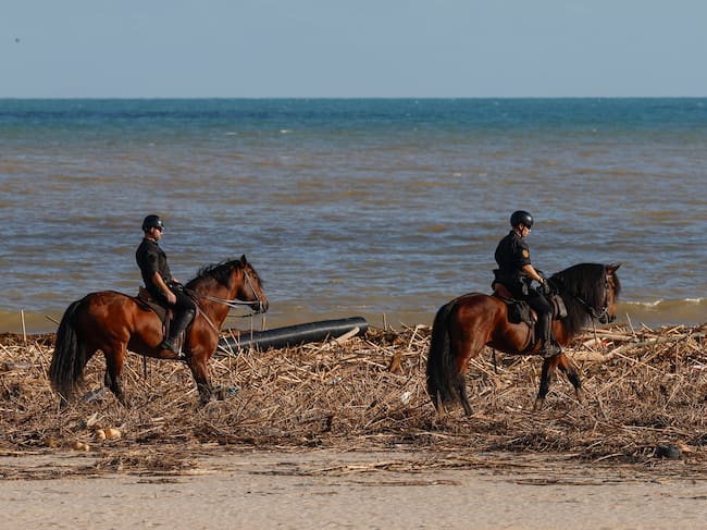VALENCIA, 07/11/2024.- Policía a caballo en la playa de Pinedo de El Saler, en Valencia, / J.J. Guillén (EFE)