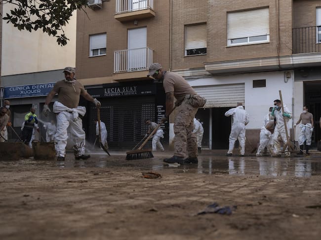 Imagen de labores de limpieza en una calle afectada por la dana. / Jorge Gil - Europa Press