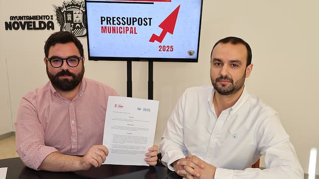 El portavoz del equipo de gobierno del grupo municipal socialista, Lluís Deltell, y el del municipal Popular, Javier Abad, han formalizado la firma de acuerdo de presupuestos por el que el Partido Popular dará su apoyo al documento presupuestario para 2025, unas cuentas que este jueves presenta a pleno la concejalía de Hacienda y que se sitúan en 31.151.358 euros. Para Deltell se trata de un “acuerdo, fruto del diálogo y la buena disposición de ambos grupos políticos, para que la ciudadanía disponga el próximo año de los mejores presupuestos, que permitan llevar adelante las inversiones necesarias para que la ciudad siga creciendo y sea cada vez más accesible”, mientras que el portavoz del grupo municipal del Partido Popular ha señalado que “con la inclusión en el presupuesto de algunas de nuestras propuestas queremos contribuir a mejorar nuestro municipio, Novelda, que está por encima de toda ideología o sigla”