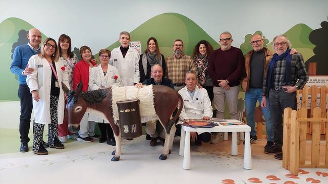 La Filà Marrakesch y su alférez Ana Gisbert han hecho entrega este lunes de la tradicional burreta del Bando Real al hospital Virgen de los Lirios de Alcoy. Se trata de una figura, realizada por el artista José Miguel Piñero, instalada en la planta de Pediatría y donde los niños y niñas que estén ingresados allí puedan echar las cartas a Sus Majestades de Oriente.