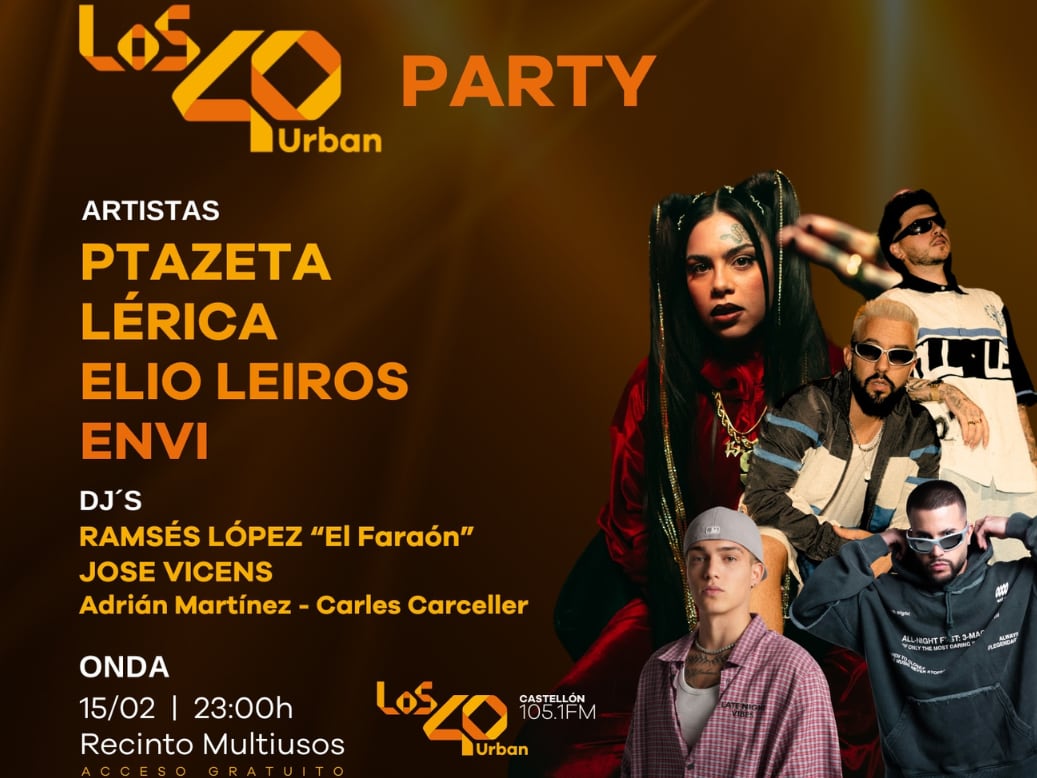 'Los40 Urban Party' llega a Onda el próximo 15 de febrero para convertir esta localidad en el epicentro de la fiesta y la música urbana. Entre los artistas que componen el cartel hay artista reconocidos en el género urbano como Ptazeta, Lérica, Elio Leiros y Envi.