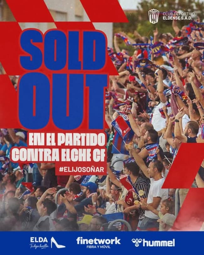 El Eldense ha vendido las 1.200 localidades que le ha enviado el Elche y se espera que sean muchos más los aficionados que adquieran su localidad por otra vía y aprovechen el corto desplazamiento, apenas media hora por carretera.