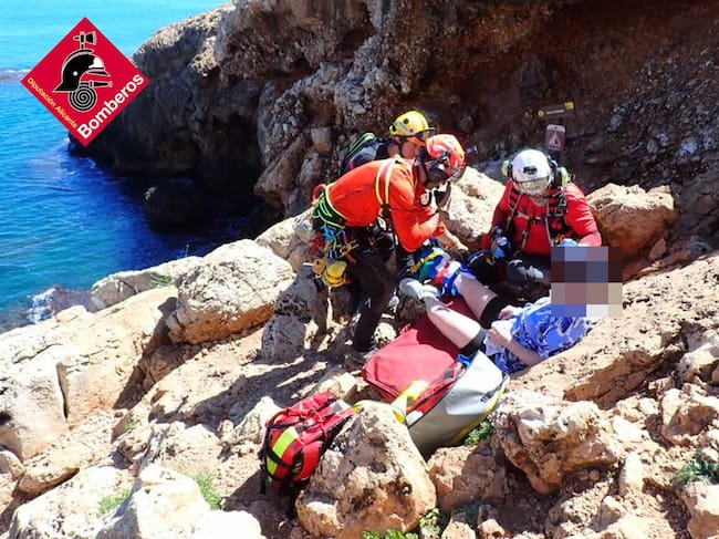 Efectivos del Consorcio Provincial de Bomberos de Alicante han llevado a cabo este mediodía un operativo de rescate en la Cova Tallada, en la zona de Les Rotes de Dénia, para asistir a una mujer de nacionalidad sueca, de 50 años, que sufrió una fractura de tobillo mientras realizaba una ruta por este paraje natural.