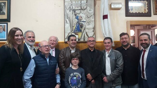 Foto final de familia con el autor del cartel, el presidente de la peña, autoridades y cargos / Paco Agulló