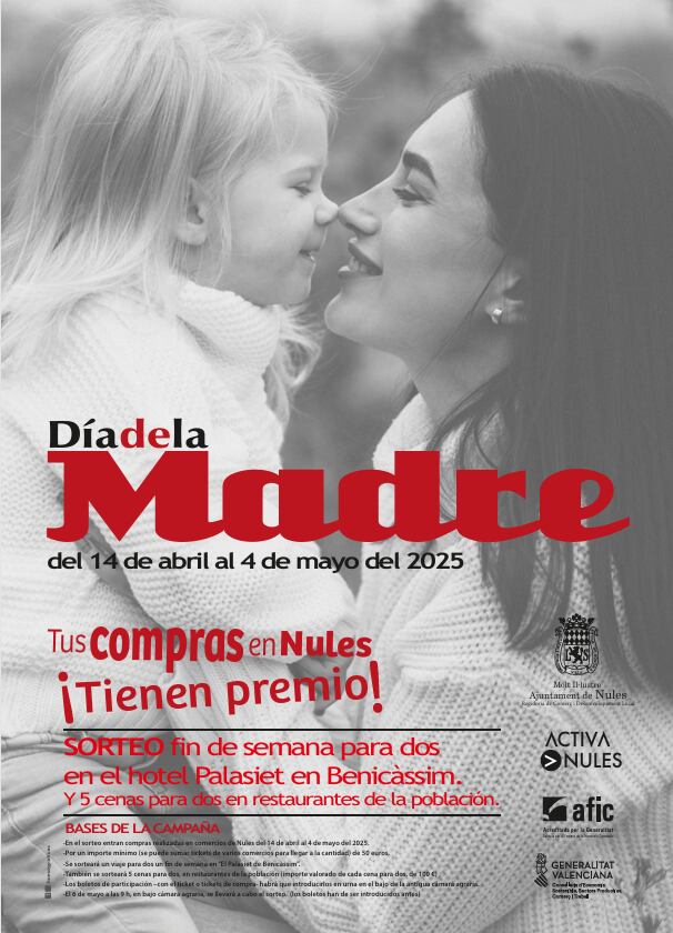Nules ha comenzado este lunes una nueva campaña de promoción del comercio local con motivo del Día de la Madre, que se celebra el primer domingo del mes de mayo, y da continuidad de nuevo al lema: “Tus compras en Nules. ¡Tienen premio!”.