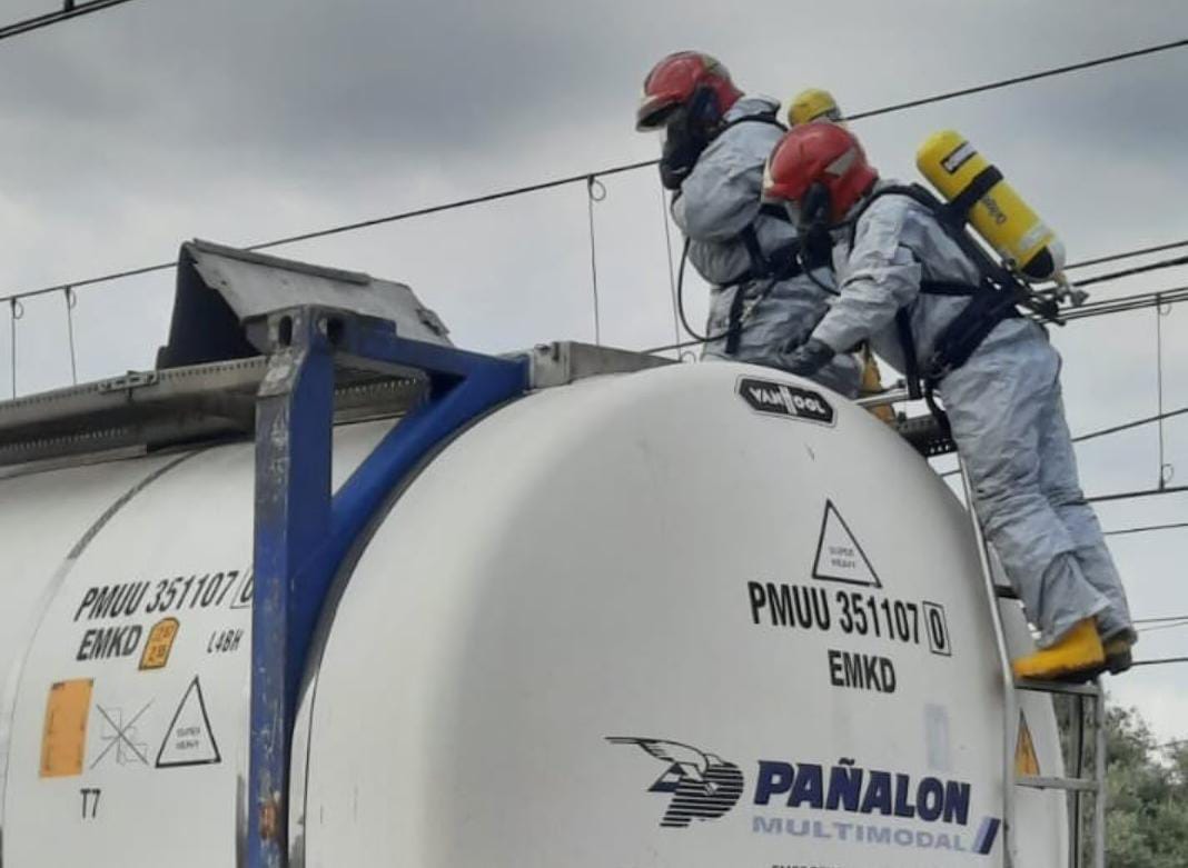 Los bomberos de Castellón han intervenido este miércoles en un tren que transportaba mercancías peligrosas y accidentalmente se ha abierto una de las trampillas de sus vagones.