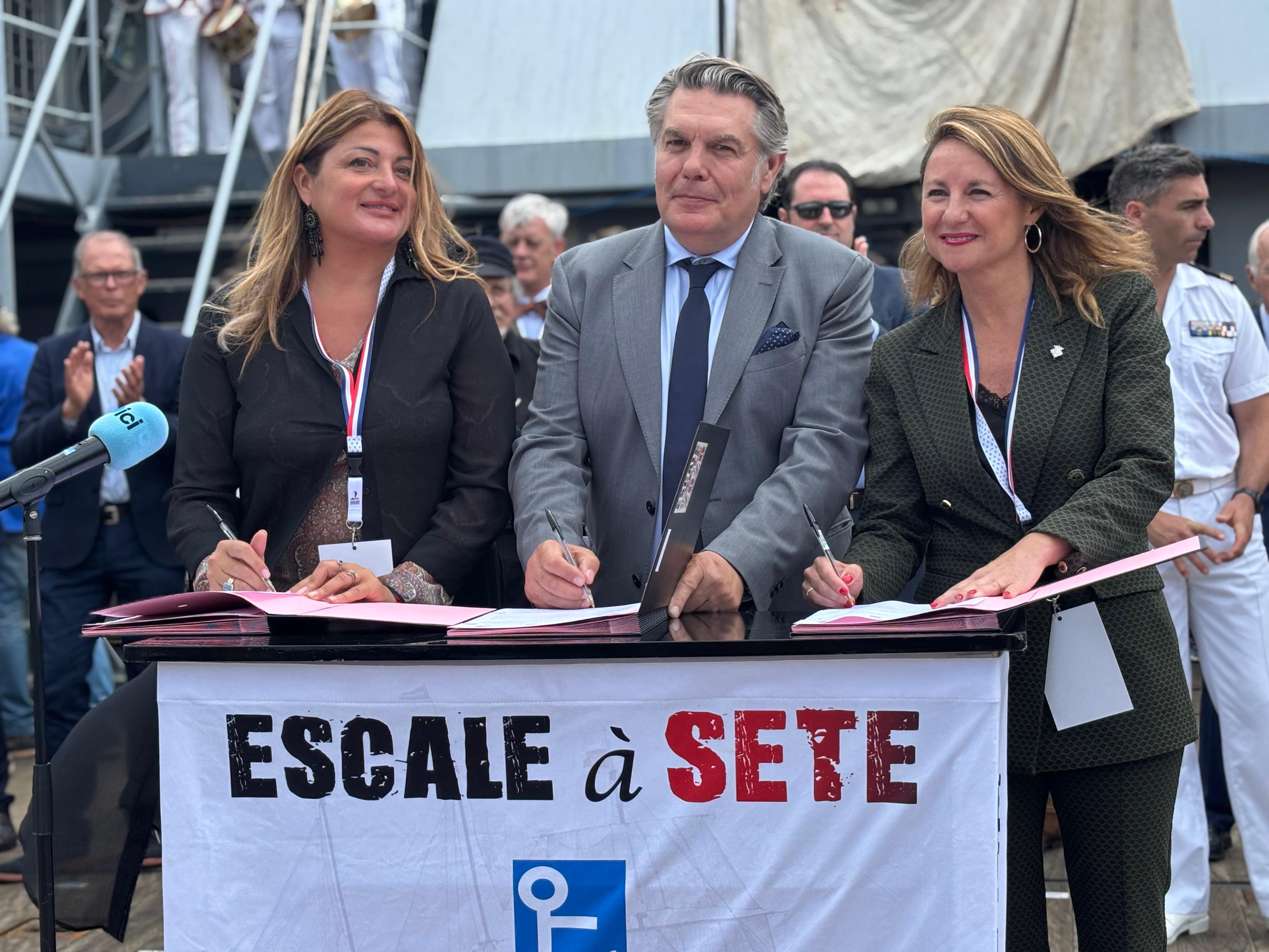 La rúbrica entre ciudades se ha realizado en el puerto de Sète a bordo de uno de los buques de la Marina francesa, el BSAM Loire y en ella han participado junto a Begoña Carrasco el alcalde de Sète, Hervé Marquès, así como Patrizia Saccone, representante del ayuntamiento de La Spezia. Este acto, en el que ha estado también presente la concejala de Turismo, Arantxa Miralles, así como el director de Escale à Sète, Wolfgang Idiri, se ha enmarcado dentro de la presentación de Escale à Sète 2026 y a su vez del III Encuentro Internacional de Gentes del Mar “Patrimoines en Escale”.