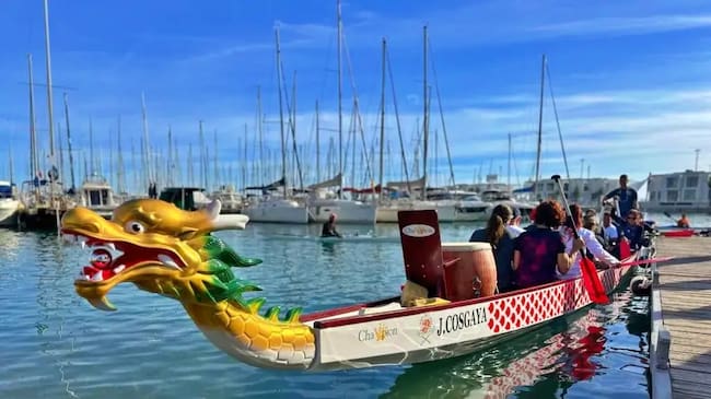 Y hablando de piragüismo, el club de regatas de Alicante también dispone de un barco dragón. El Dragon Boat es una disciplina que procede de Asia y que cuenta con casi 2.000 años de antigüedad. Se practica en barcos de 10 o 20 personas que cuentan con la ayuda de sus palas, una por palista y están guiados por un timonel y un animador.