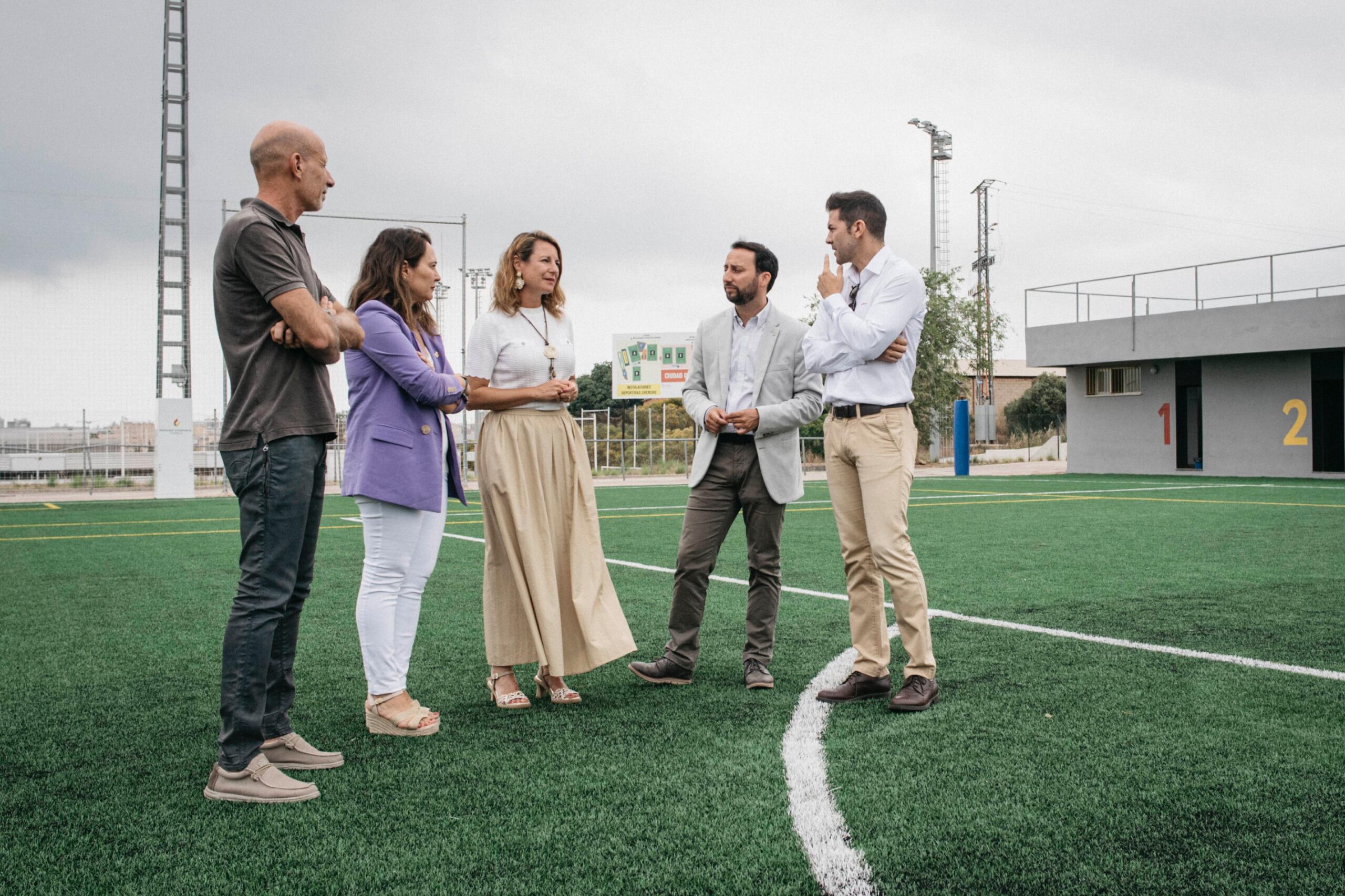 El Ayuntamiento de Castellón ha finalizado las obras de renovación del césped del campo A del complejo deportivo Chencho. La alcaldesa, Begoña Carrasco, acompañada por el concejal de Infraestructuras, Sergio Toledo, y la concejala de Deportes, Maica Hurtado, ha asistido al acto de recepción de las obras, que han supuesto una inversión de 199.811,25 euros.