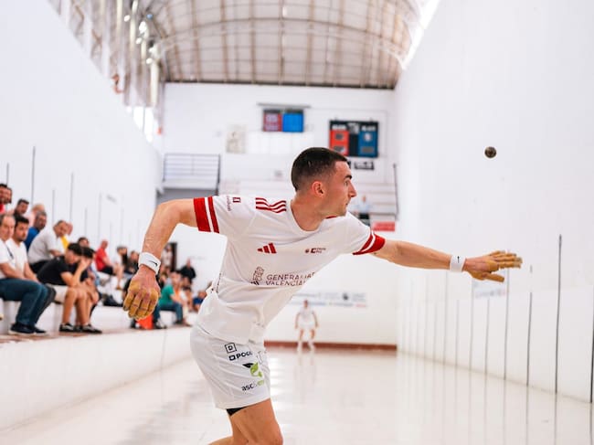 Ivan, pilotari de Ontinyent, durante una de sus partidas en los cuartos de final del Campeonato Individual de raspall 2025
