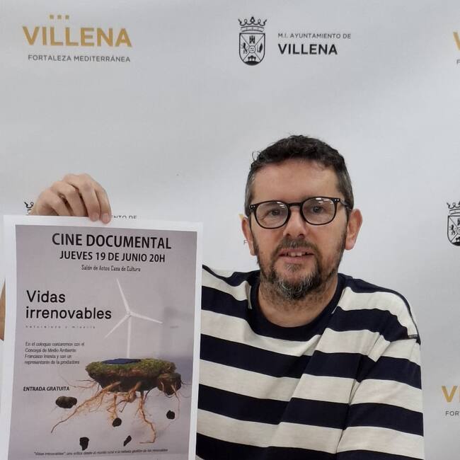 La Concejalía de Medio Ambiente proyectará este jueves, 19 de junio, el documental ‘Vidas Irrenovables’, del director Francisco José Vaquero, según ha anunciado hoy el edil, Francisco Iniesta. El documental se podrá ver en la Sala de Actos de la Casa de la Cultura a las 20.00 horas con acceso gratuito, y continuará con la celebración de una charla-coloquio sobre la gestión de las plantas fotovoltaicas en los territorios rurales y su impacto en el medioambiente y la sociedad.