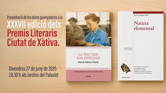 Los jardines del Palasiet acogerán este viernes 27 de junio, a las 20:30h, la presentación de las obras ganadoras de los XXXVII Premios Literarios Ciudad de Xàtiva, una cita destacada en la agenda cultural local que este año hace realidad la edición y distribución de los libros premiados, acercándolos a todos los lectores.