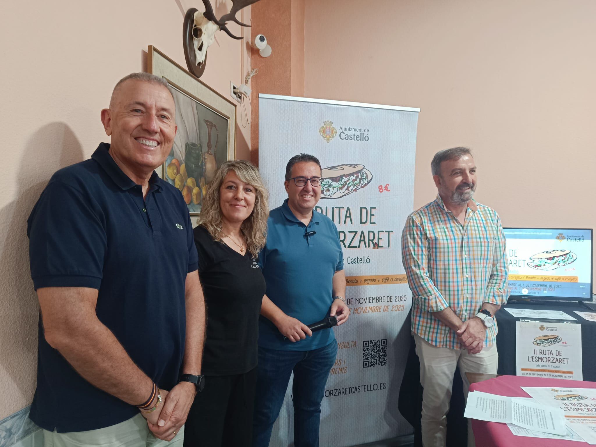 El concejal de Barrios y Participación Ciudadana, Paco Cabañero, acompañado del Teniente Alcalde del distrito Oeste, Vicent Sales, y del concejal de Economía y Empleo, Juan Carlos Redondo, ha presentado la II Ruta de l’Esmorzaret dels Barris de Castelló. También han estado presentes Laura Grozav, propietaria de Mesón Casa Laura, y Cristi Franyi, en representación de Bocatería Cristi, que se incorpora por primera vez en esta ruta.
